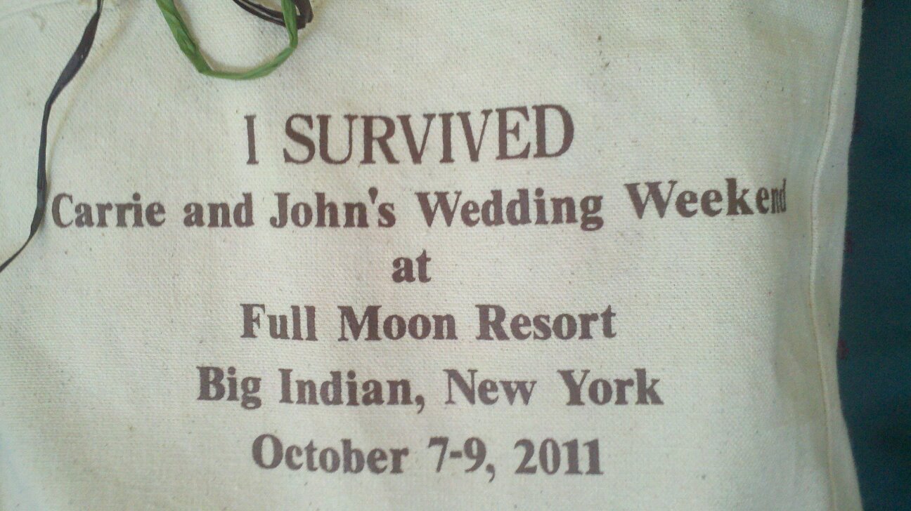 I have not posted in a couple of days because I had a weekend wedding getaway at a resort in the Catskills. You may be wondering if it was my wedding. It wasn’t. My friends John and Carrie got married after being engaged for over a year. I’m still a tiger out there, and you can’t put a leash on a tiger (translation: I spend many horny nights alone at home).