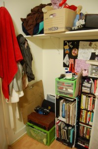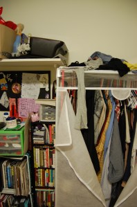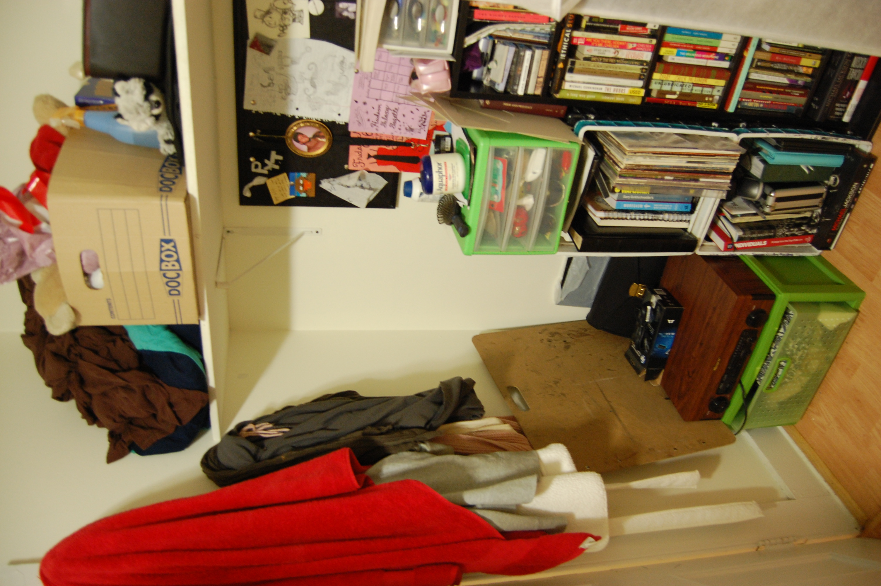 About three months ago I moved into a new apartment. I was faced with the dilemma of how to arrange my sort-of small room with the massive amounts of shit I own, and work around the fact that I don’t have a closet and that there are two doors to my bedroom. Eventually I figured it out to some degree, and things were working well, but something just didn’t feel right.