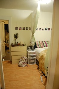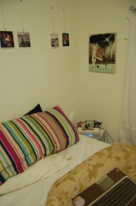 Anyway, was that helpful? Do you care? I don’t know, but I spent like a week figuring this crap out so I figured I might as well share it. And I will say that I do feel very comfortable and peaceful in this room. After a day/night of dealing with morons or being wasted, it’s nice to come back to a cozy little abode and pass out. It’s hard to navigate certain necessities like a dresser or a closet, but I think as long as you’re associating things in your mind with what they should represent, it all works out. Or something.