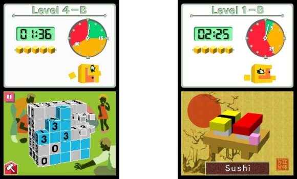 The sequel, Picross 3D, was also released on the DS (not the 3DS believe it or not) in 2010.  This game added a Y axis to make the game even more compelling.  The same elements apply, but now you can slice into large blocks and widdle them down front to back, and up and down, block by block until you have a 3D image.