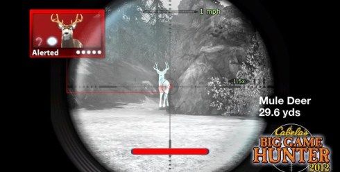 Here’s a snippet from Cabela’s Big Game Hunter 2012. At least the deer has been “alerted.” Did it received a text from a friend? “Yo, watch out, sen!” What’s the matter, PETA, tired of chasing the NRA?