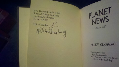 As you can see on the left page, the edition size on Planet News was 500 copies. And if you didn’t know what Allen Ginsberg’s signature looks like, now you do! Though nice to have, Ginsberg’s signature means considerably less from a collectible standpoint because he signed everything. Some signatures add a ton of value. Frank O’Hara’s signature adds a great deal of value to Lunch Poems because he died tragically at the age of 40 after being struck by a dune buggy on the Fire Island beach.