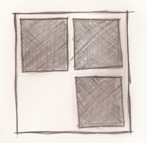 An example of this idea would be a square piece of paper equally divided into four smaller parts by drawing only three squares.  The paper provides the context on which the concept will be applied; the three squares drawn create the pattern. The fourth square does not need to be drawn because the pattern has already been established and the negative space is equal to the size of positive space, which falls inline with the pattern and so your mind fills in the blank and the composition appears balanced.