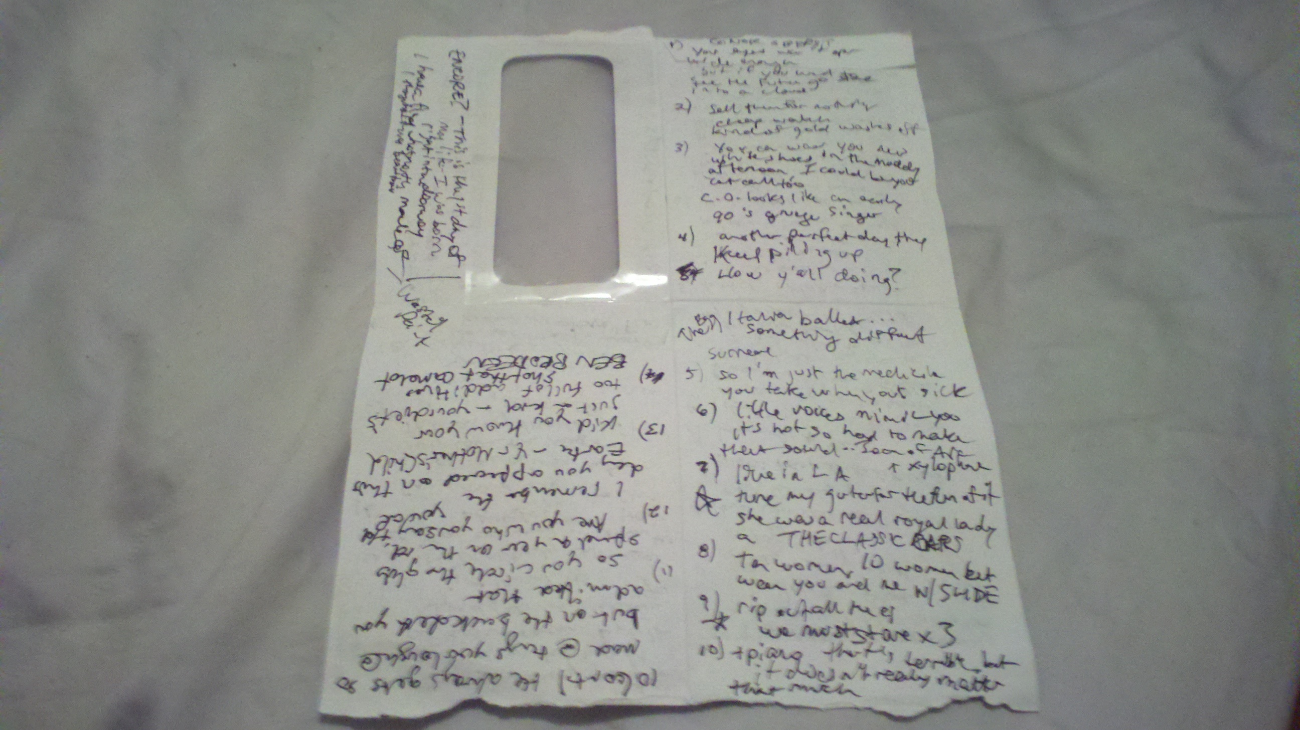 Prior to that I was taking notes via text message, or more likely, writing notes and setlists on pieces of mail. If you find yourself in a pinch, the latter can really come in very handy for taking notes. It is a simple 4-step process outlined below: