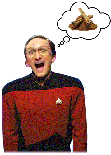 However, none of that matters because the point is: I am not going to change anything. I like Star Trek, I don’t read, l enjoy writing about the amusing scenarios I imagine, AND I AM going to eat an entire spoonful of cinnamon! . . . Please, ladies, not all at once.